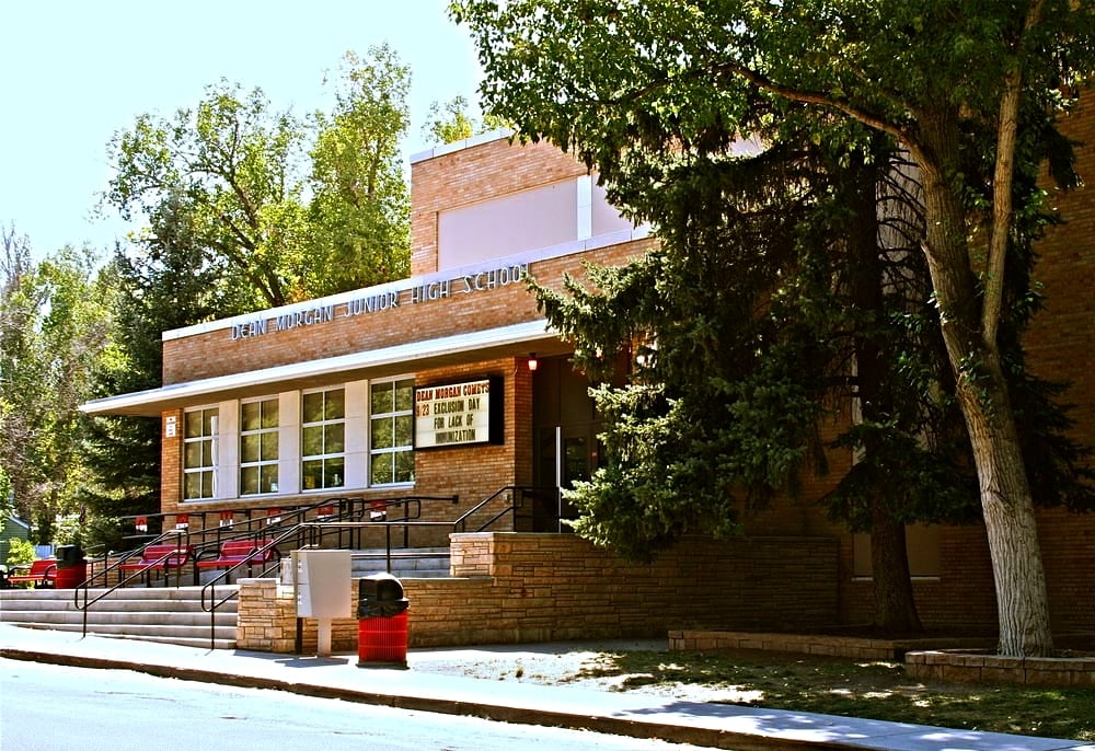 After World War II, Wyoming and the rest of the country began building schools like crazy to accommodate all the baby boomers. Wyoming embarked on a statewide building program in an effort to modernize its schools. Dean Morgan Junior High in Casper was a part of that campaign and stands today as an example of the Modernist school of architecture of the Post-war Era—a time when the straight line, rejection of ornament, and “form follows function” credo took hold. In 1953, Casper teens entered the new Dean Morgan Junior High, praised for its “space, soft colors, modern illumination, convection heating, and a general building design tailored for needs of younger teen-agers.” The Natrona County School District (NCSD) recently renovated the 62-year-old building (one of only a few left in the state), updating its systems but keeping the overall Mid-century Modernist design and decorative touches such as aluminum lettering and terrazzo floors. In 1989, the school received recognition from former First Lady of the United States Nancy Reagan, one of 30 schools across the nation, for its anti-drug program. AHW’s National Register nomination for the school is currently being reviewed by NCSD.