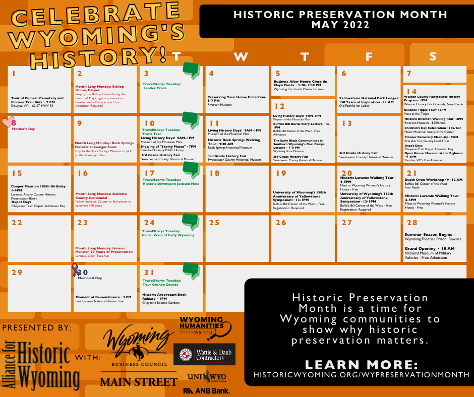 This year’s Historic Preservation Month celebration includes many different activities to enjoy across Wyoming!